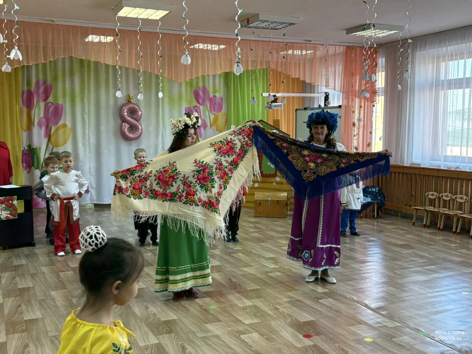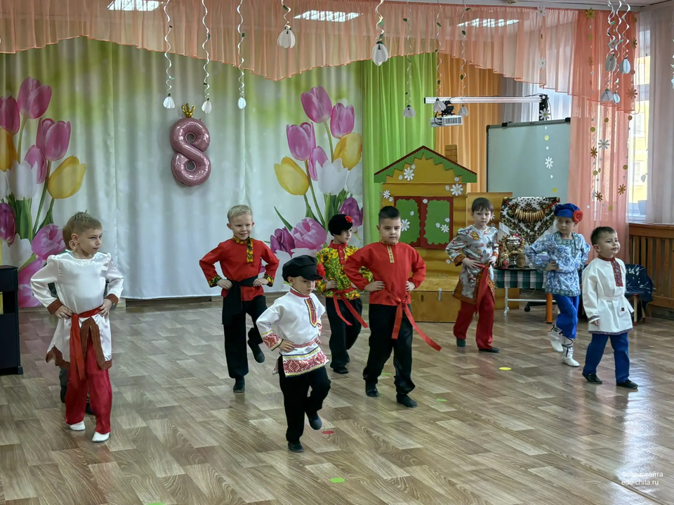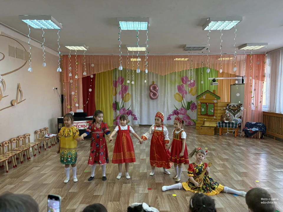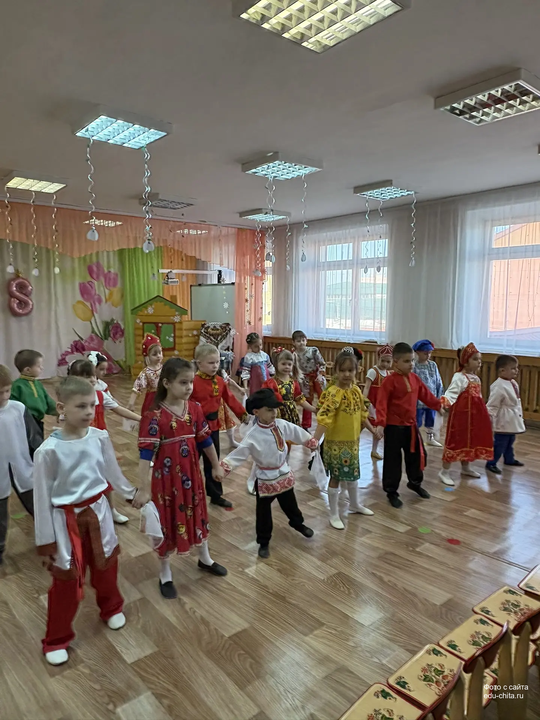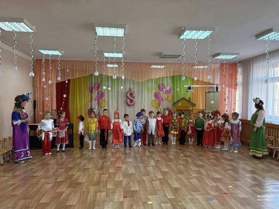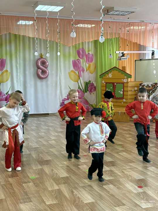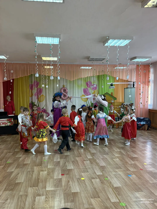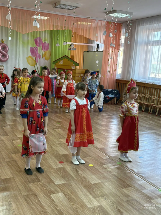 Сегодня в старшей группе детского сада №57 состоялся весенний утренник, посвящённый русской народной культуре. Мероприятие началось с торжественного выхода детей, одетых в национальные костюмы. Разнообразие элементов народного наряда — сарафаны, косоворотки, головные уборы — создало аутентичную атмосферу.