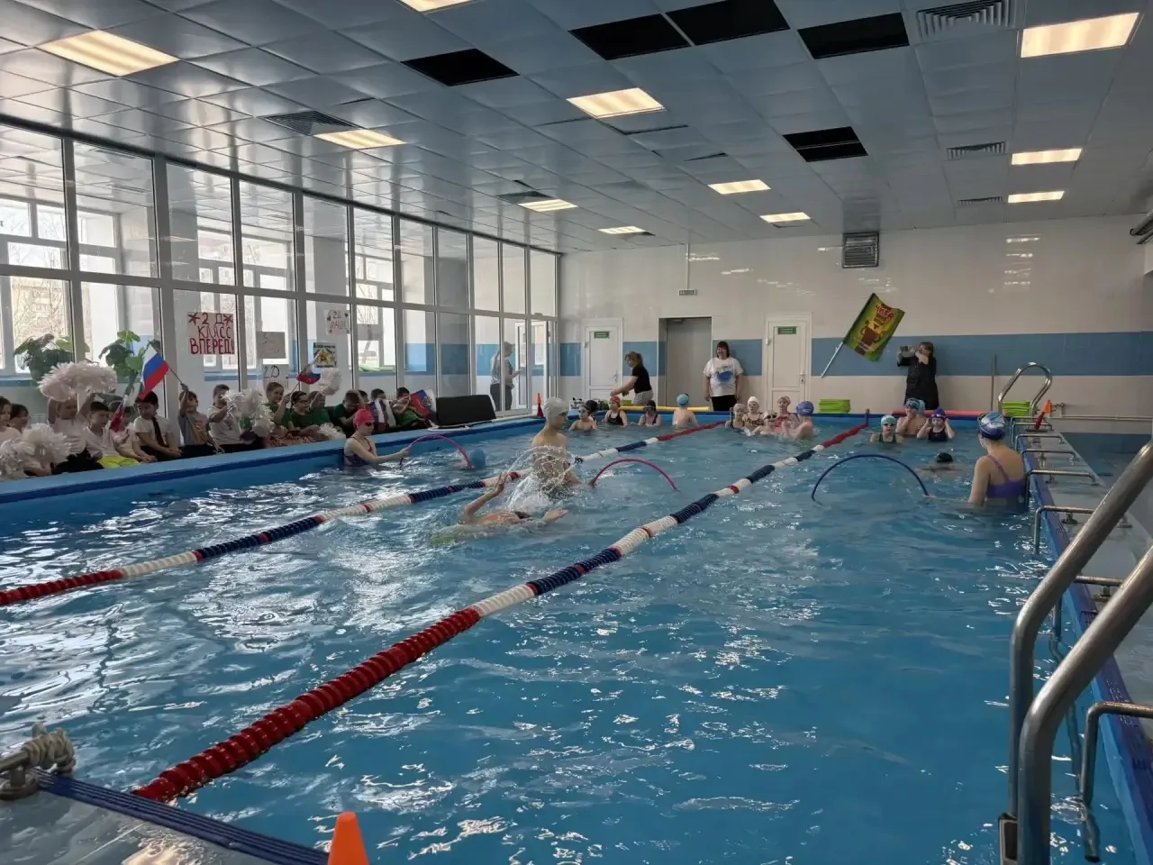 «Орлята» - второклассники стали участниками «Весёлых стартов на воде». Соревнования начались с «Орлятского» флэшмоба», который провели участницы студии современного танца «Dance Time». Успехов в состязаниях участникам пожелала советник директора по воспитанию Пентюхина Татьяна Александровна. Затем ребята представили свои команды и приготовились к покорению водной стихии под руководством преподавателя по плаванию Романовой Светланы Сергеевны.