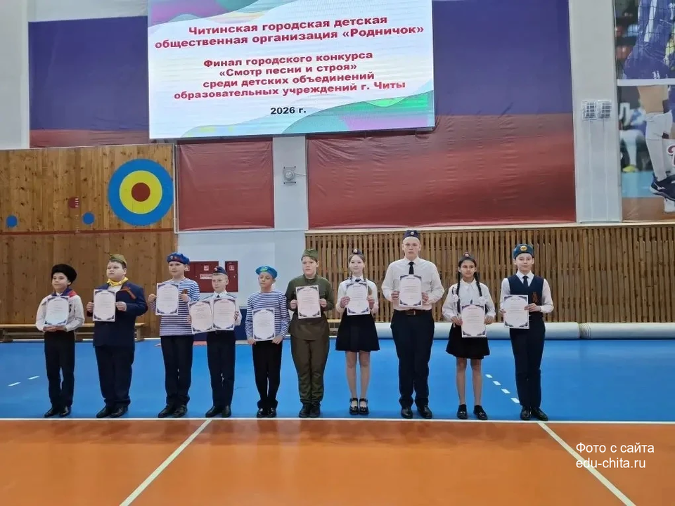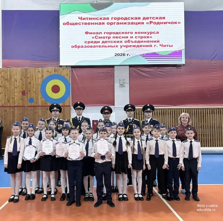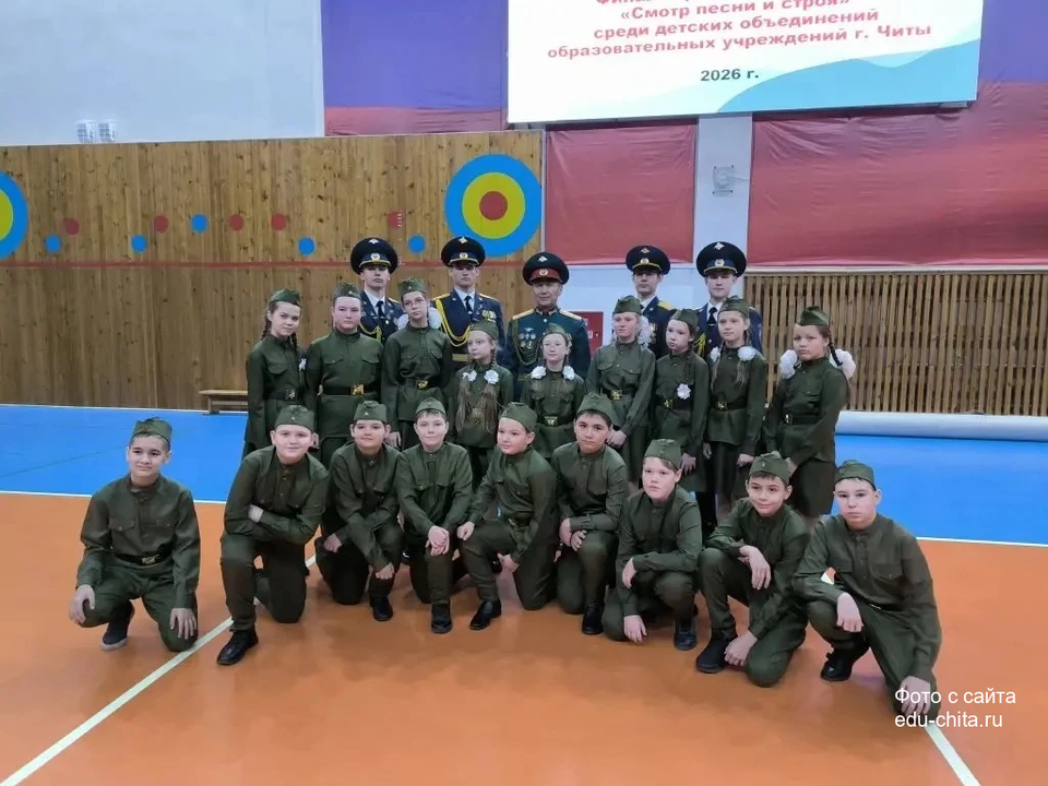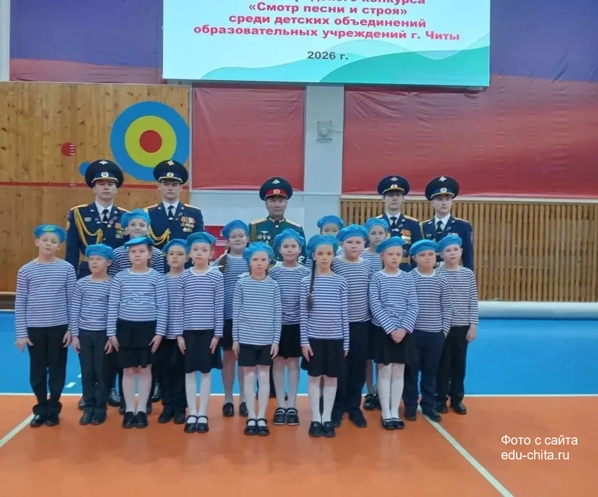 Первый этап конкурса «Смотр песни и строя» состоялся накануне Дня защитников Отечества. Его участниками стали более 400 отрядов из 46 детских объединений образовательных учреждений г. Читы. Конкурс состоялся при поддержке Комитета образования городского округа «Город Чита».