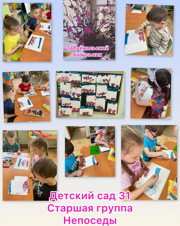 Дети освоили технику пластилинографии, создавая изображения багульника из пластилина.
