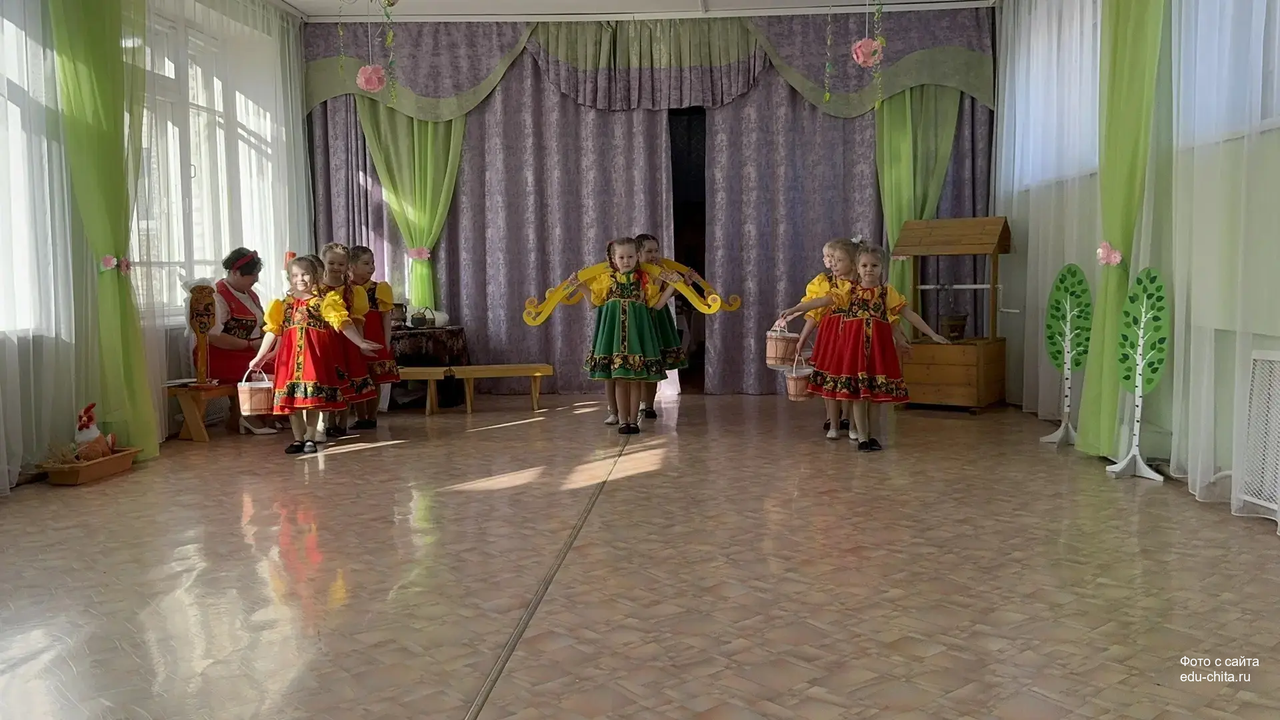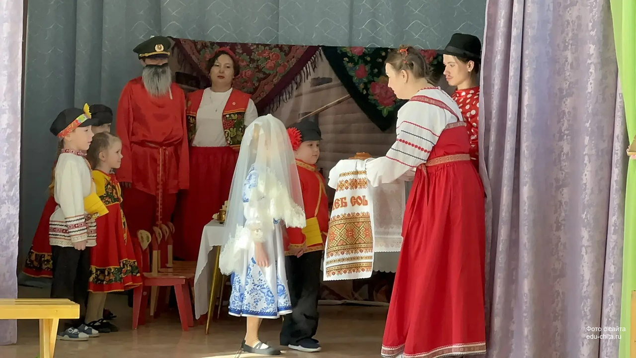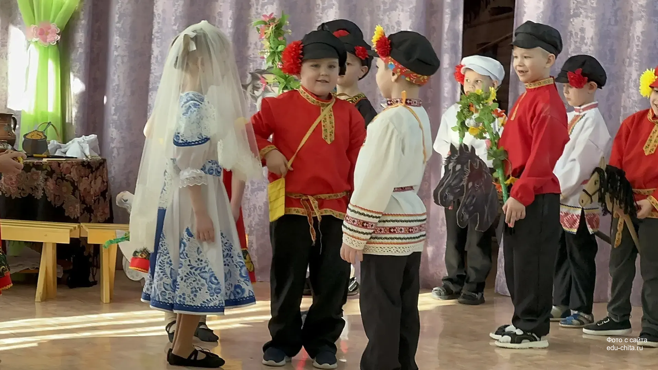 Мероприятие провела музыкальный руководитель Митюкова Любовь Владимировна. Дети самостоятельно исполняли свои роли без участия взрослых. Праздник включал в себя пять сцен. Первая сцена — «Вечерки». Участники мероприятия пели народные песни, исполняли хороводы и частушки под аккомпанемент аккордеона. В это время жених и невеста присматривались друг к другу.
