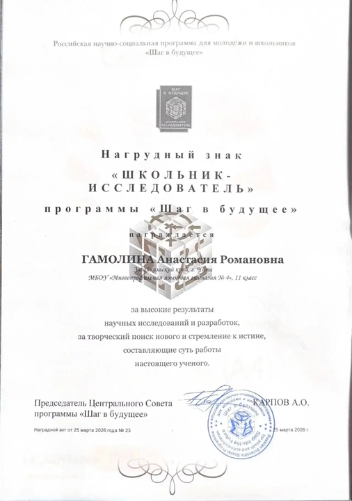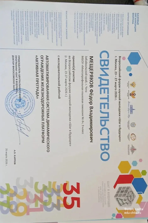 Члены ШНОУ «СИЯР» Многопрофильной языковой гимназии №4 в составе команды «Новаторы» от Забайкальского края приняли участие в 35-м юбилейном Всероссийском форуме научной молодежи «Шаг в будущее», который проходил в г. Москве с 23 по 27 марта.
