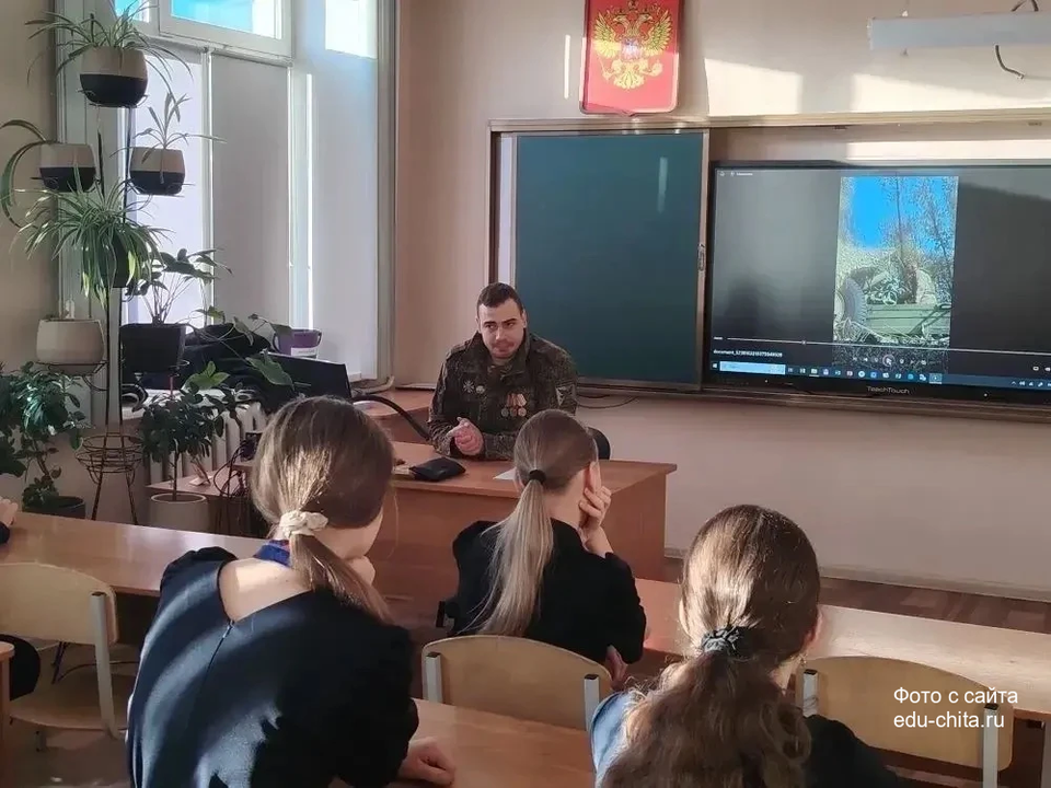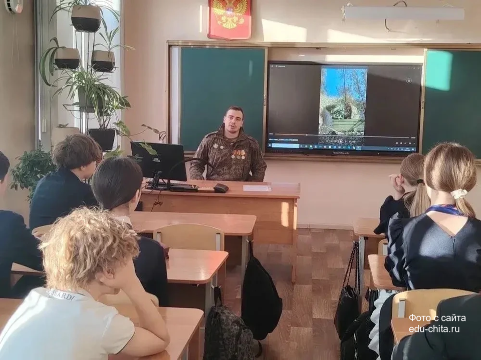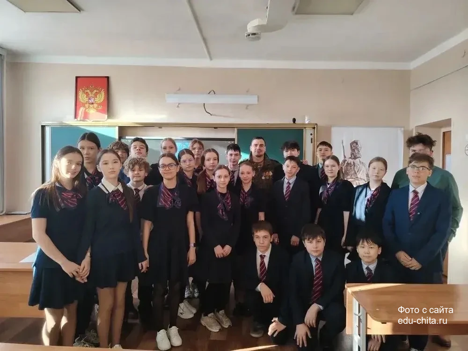 2 апреля в 7 «Б» классе МБОУ «Гимназия № 21» города Читы состоялся Урок мужества. Гостем мероприятия стал Ивкин Никита Олегович — председатель Забайкальской краевой общественной организации «Ассоциация ветеранов СВО».