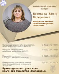 Все желающие могут ознакомиться с материалом, посвященным выдающемуся педагогу, руководителю городского научного общества "Новаторы" и человеку с очень богатой профессиональной историей – Дроздовой Жанне Валерьевне.