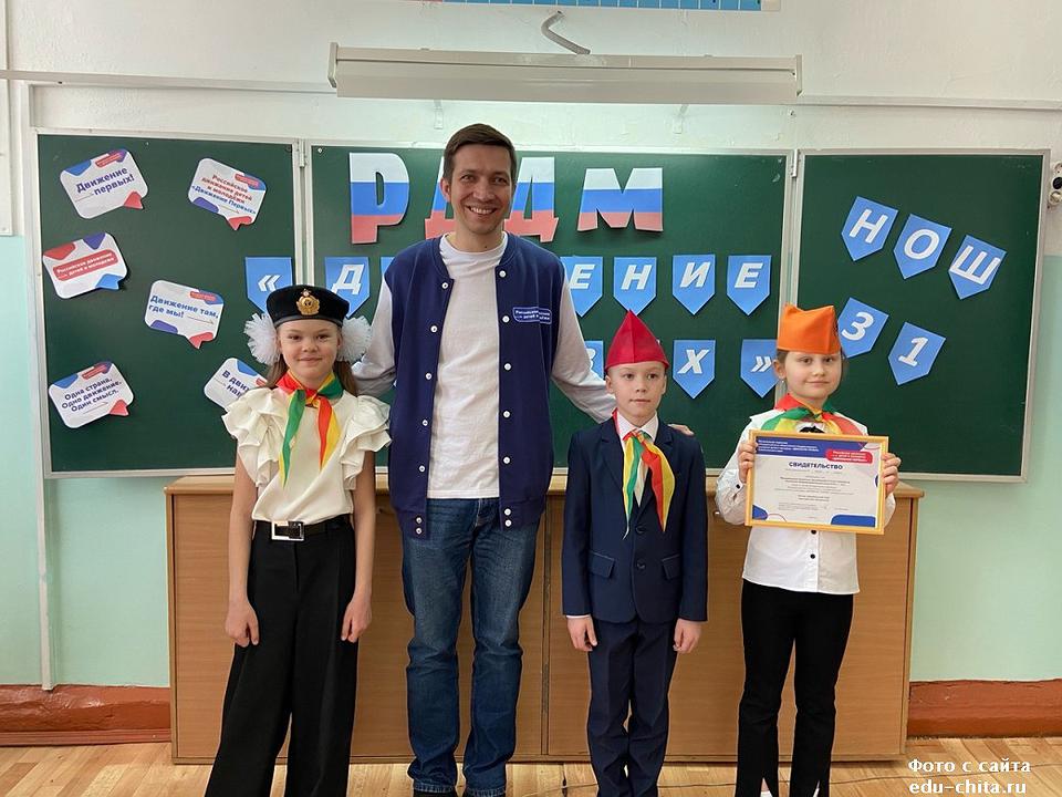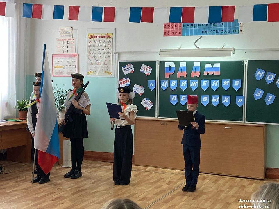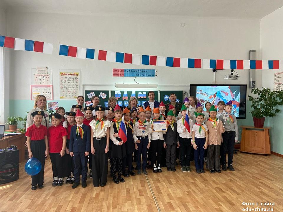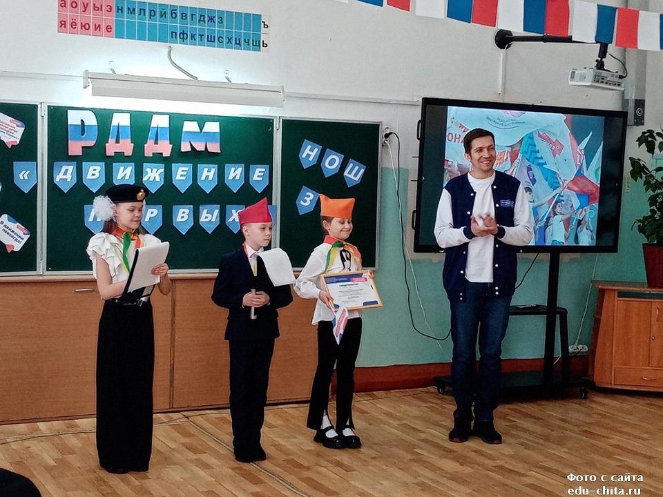 В мероприятии также приняли участие почетные гости председатель совета регионального отделения Общероссийского общественного-государственного движения детей и молодежи в Забайкальском крае О.Ф.Дудукаленко, родители учеников начальных классов А.А. Пересадченко, Н.А.Бочарникова.