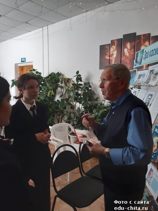 Борис Георгиевич рассказал ребятам о становлении космической науки и освоении космоса нашей страной, представил свою книгу «Космическая летопись Забайкалья, в которой описаны интересные страницы жизни забайкальских космонавтов.