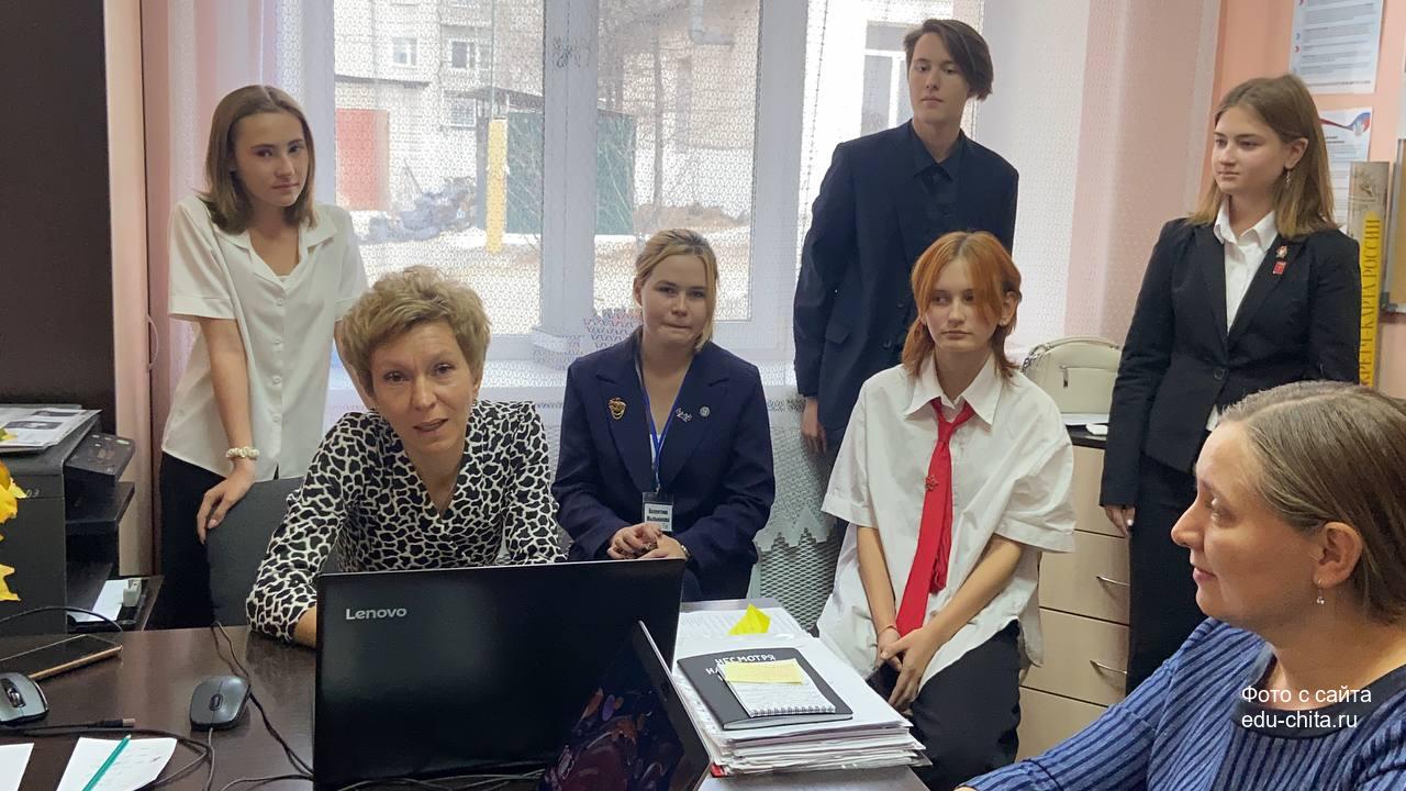 Очень теплая и добрая беседа состоялась в школе №47 города Читы с заместителем директора школы №47 Людмилой Краус, советником директора Ириной Уваровой, с ребятами Почетного караула и вожатыми. Они рассказали про мероприятия, которые будут в школе организованы в каникулярное время.