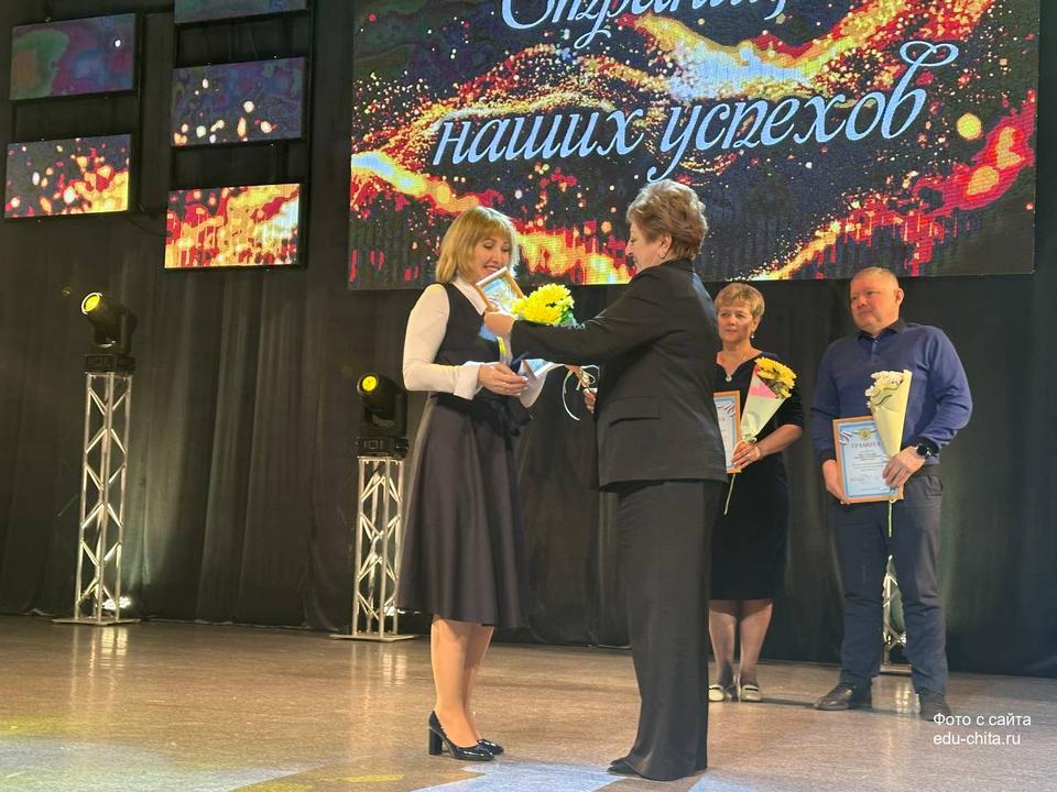 В знак признания многолетнего и добросовестного труда, профессионализма и личного вклада в воспитание и обучение подрастающего поколения города Читы почётным званием «Почётный работник сферы образования Российской Федерации» были отмечены: