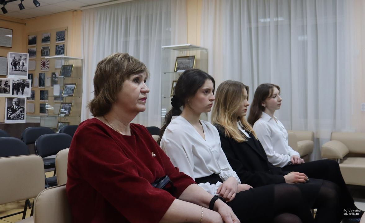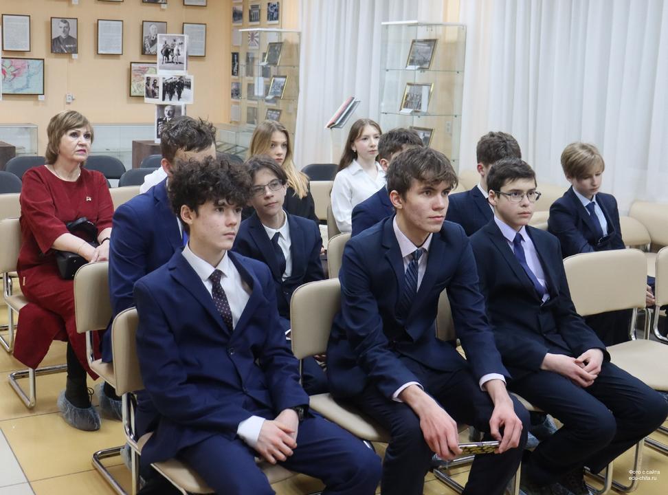 В Центре героико-патриотического воспитания «Дом юнармии» состоялся кинолекторий для учащихся 10 класса школы №19. Научным сотрудником Забайкальского краевого художественного музея Ириной Васильевой был показан документальный фильм «Сыны полков».