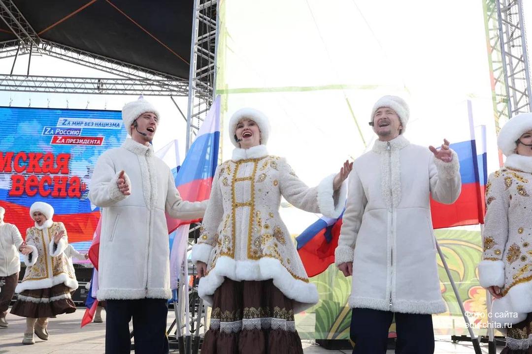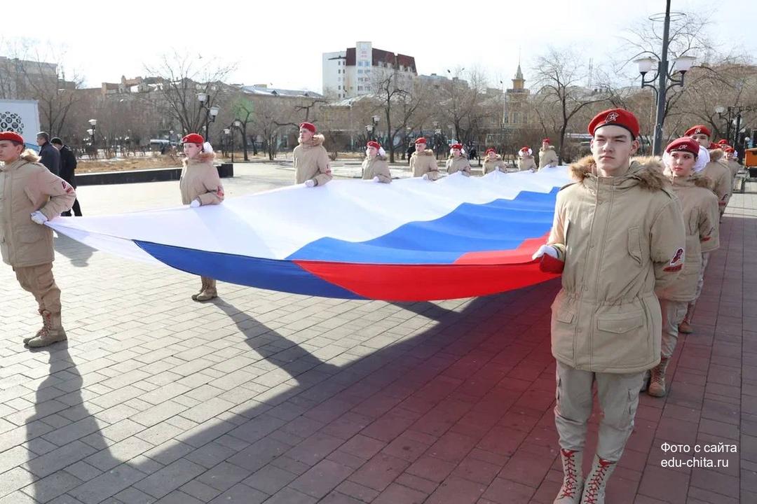 Возвращение Крыма в состав нашей страны — это историческая справедливость. Сегодня забайкальцы поздравили друг друга с этим праздником. На площади Ленина развернули 15-метровый триколор, провели большой флешмоб «Севастопольский вальс».