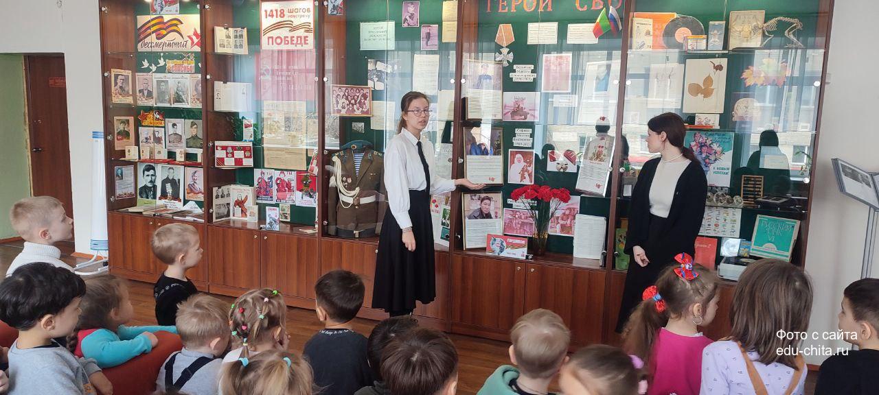 Далее дети посетили витрины, посвящённые ученикам школы, которые погибли во время службы в Афганистане и на специальной военной операции. Оказалось, что многие из этих учеников жили на улице Токмакова. Дети узнали, что улица получила своё название в честь ученика школы Сергея Токмакова, который погиб в Афганистане.