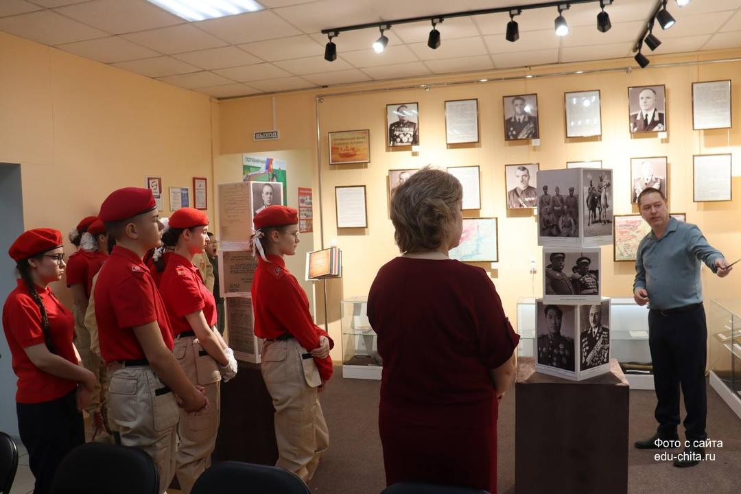 🌟 Сотрудник Дворца детского (юношеского) творчества (далее ДДЮТ) Татьяна Семенова познакомила присутствующих с патриотической деятельностью и мероприятиями, которые проводятся в «Доме юнармии». Денис Жеребцов провел экскурсию по выставке «Забайкальский фронт. Страницы истории», рассказав о событиях завершающего этапа Второй мировой войны 1945 г.