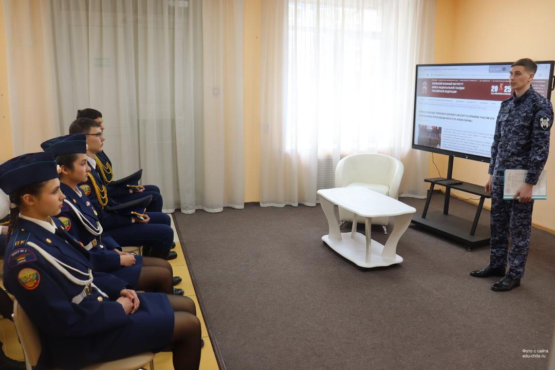 Важной частью мероприятия стала профориентационная беседа, в рамках которой старший лейтенант Идрисов рассказал о возможностях поступления в ведомственные высшие учебные заведения, требованиях к кандидатам и перспективах службы.
