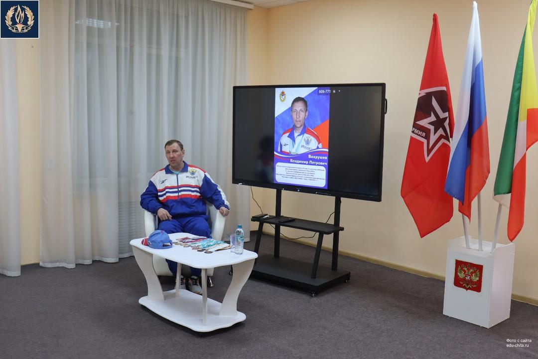 В Центре героико-патриотического воспитания «Дом юнармии города Читы» состоялась встреча юнармейцев Почетного караула школы №29 с выдающимся спортсменом, мастером спорта международного класса России по военному пятиборью Владимиром Вахрушевым.