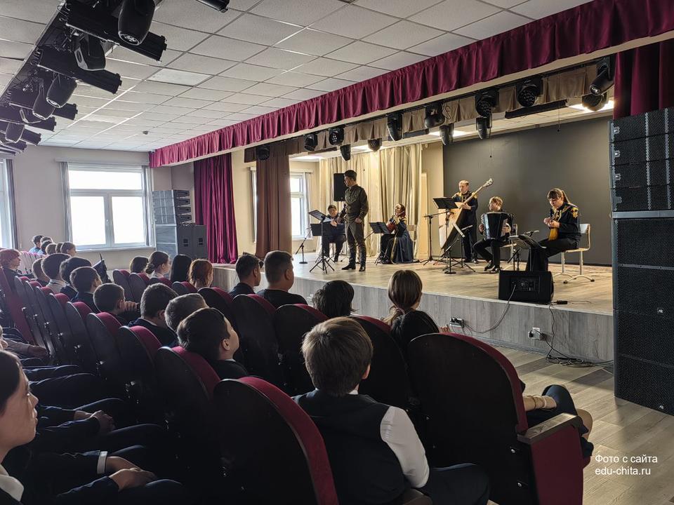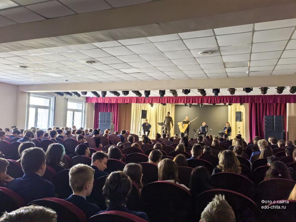 В актовом зале школы №55 города Читы состоялось благотворительное представление, организованное совместно с Забайкальской краевой филармонией. Все средства, вырученные от продажи билетов, будут направлены на поддержку бойцов, участвующих в специальной военной операции.