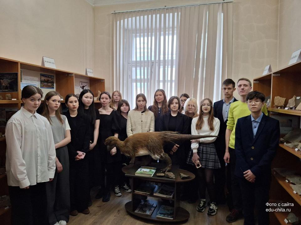 Группа учащихся гимназии №4 города Читы посетила музейную экспозицию Института природных ресурсов, экологии и криологии Сибирского отделения РАН. Ребята ознакомились с результатами научных исследований, проведённых в пади Кулинда Чернышевского района.