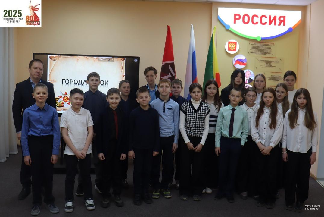Педагог Денис Жеребцов рассказал ребятам о городах, которым за их вклад в победу было присвоено высокое звание «Города-герои». Ребята узнали, что первыми городами-героями стали Ленинград (с 1991 года – Санкт-Петербург), Волгоград (до 1961 года — Сталинград), Москва, Севастополь, Одесса и Киев. Позднее это звание получили ещё шесть городов – Керчь, Минск, Новороссийск, Тула, Мурманск и Смоленск. Также высокое звание «Крепость-герой» получил Брест, сейчас это мемориальный комплекс и одна из главных достопримечательностей Белоруссии. Защитники этих городов в ходе ожесточенных сражений проявили мужество, стойкость и отвагу.