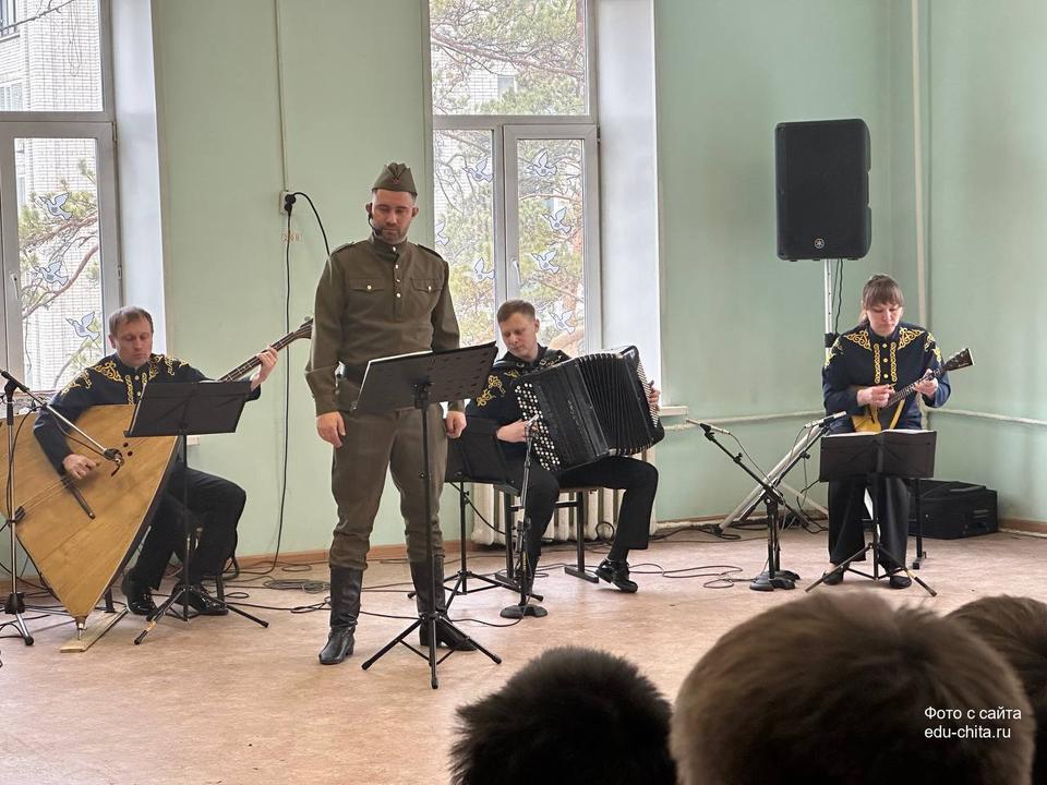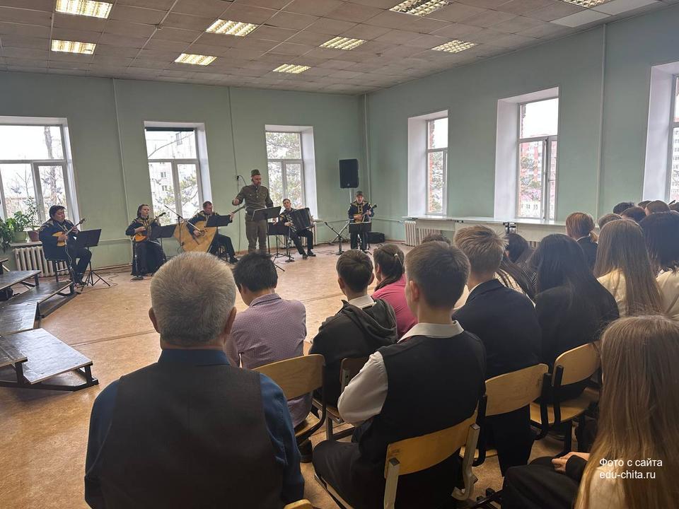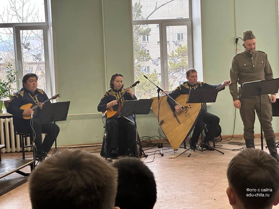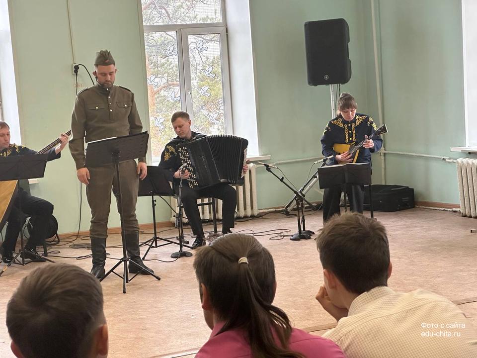 Сегодня, 9 апреля, учащиеся 9-х классов школы №3 познакомились с литературно-музыкальной программой «Судьба человека», которую представили артисты Забайкальской краевой филармонии. Постановка организована в рамках проекта «Пушкинская карта», а все собранные средства направят в фонд «Народный фронт. Все для победы!» на выполнение заявок от забайкальских подразделений, участвующих в СВО.