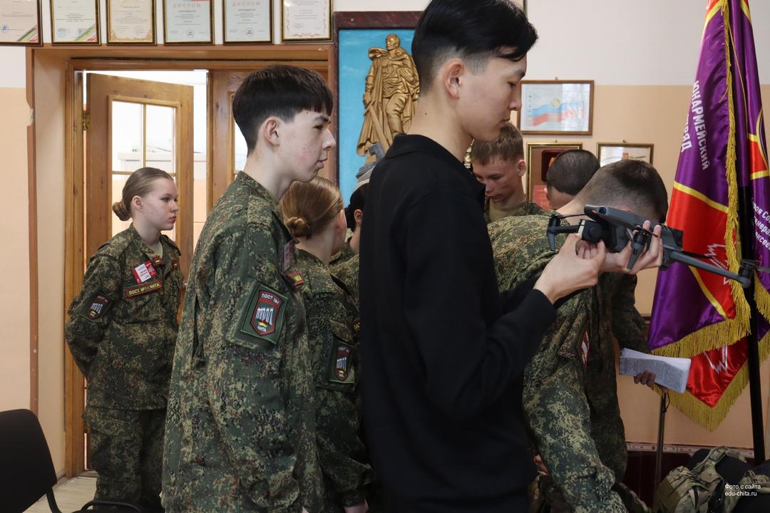 С интересом юнармейцы узнали об основных видах современной российской техники, применяемой в зоне СВО. А также — об особенностях работы операторов беспилотных летательных аппаратов.