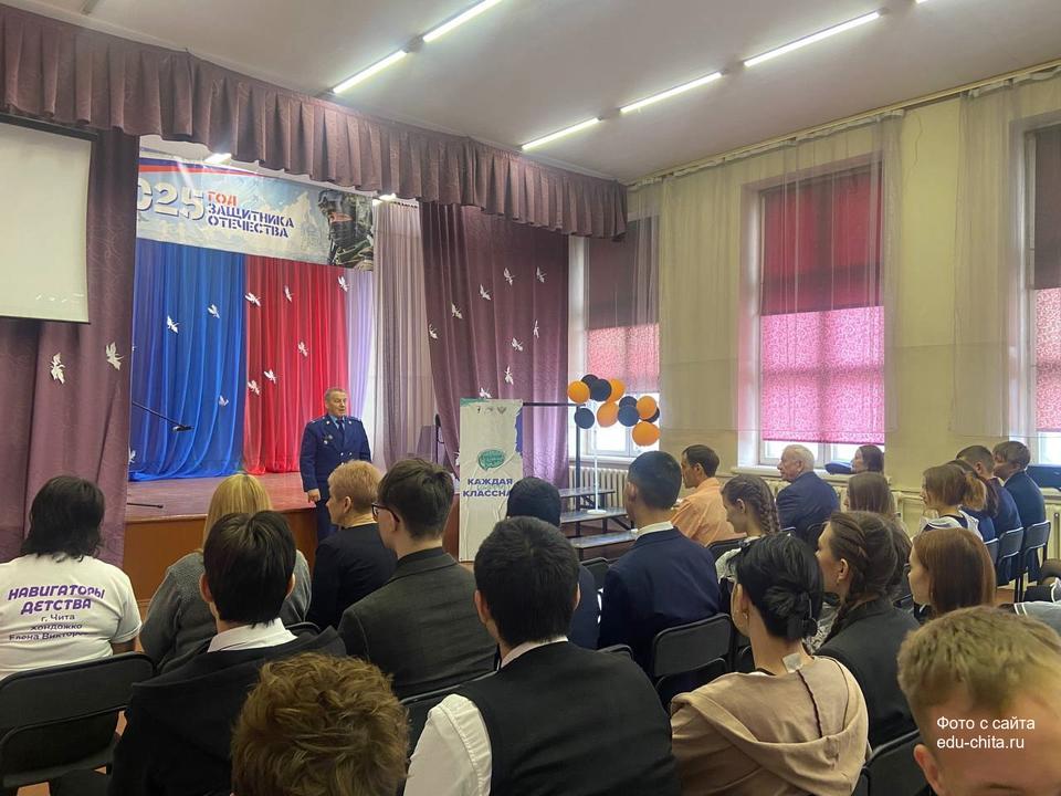 Почетными гостями стали представители ветеранских организаций и деятели культуры Забайкалья. Своим опытом и мудростью поделились председатель ветеранской организации прокуратуры Забайкальского края и сопредседатель Забайкальского регионального отделения Культурного фронта России Валерий Попов, а также председатель ветеранской организации УФСБ России по Забайкальскому краю Сергей Рыкунов.