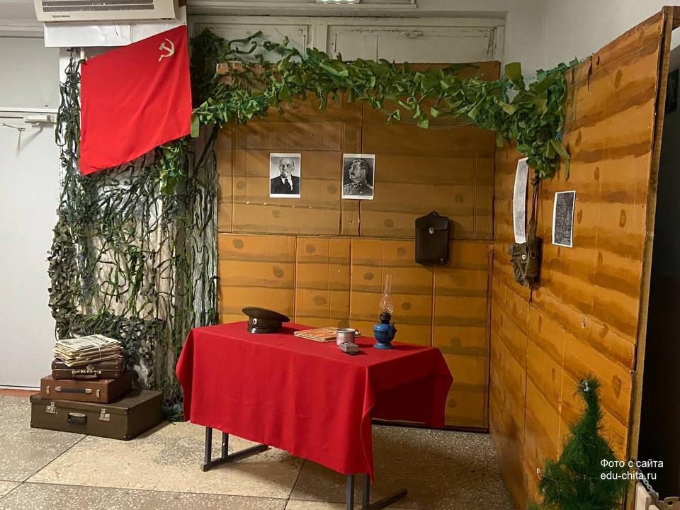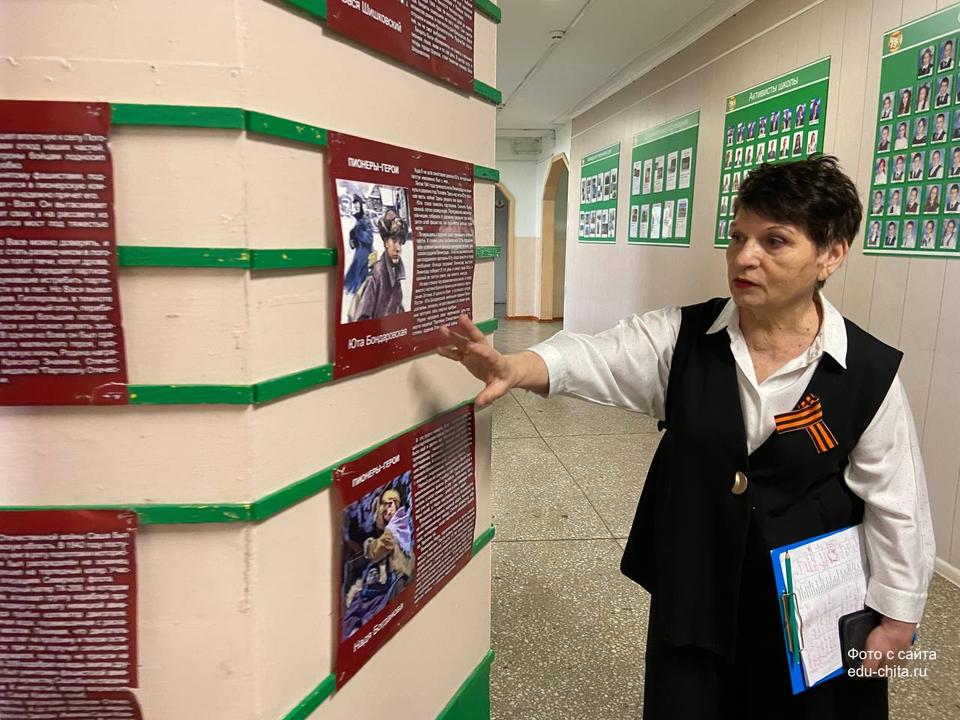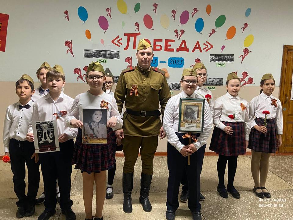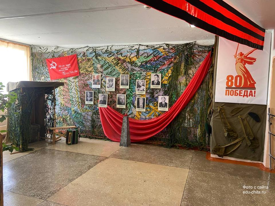 Школа № 30 превратилась в настоящий музей под открытым небом. На первом этаже разместилась трогательная экспозиция с фотографиями ветеранов Великой Отечественной войны, проживавших в 6-м микрорайоне Читы.