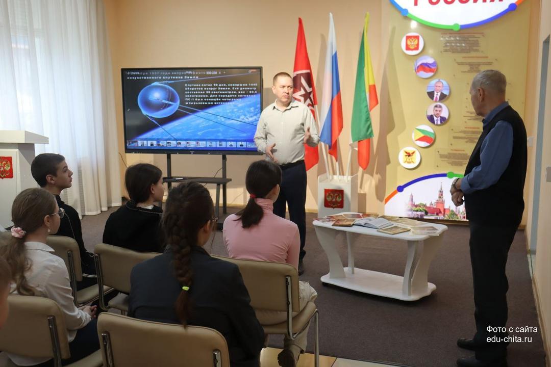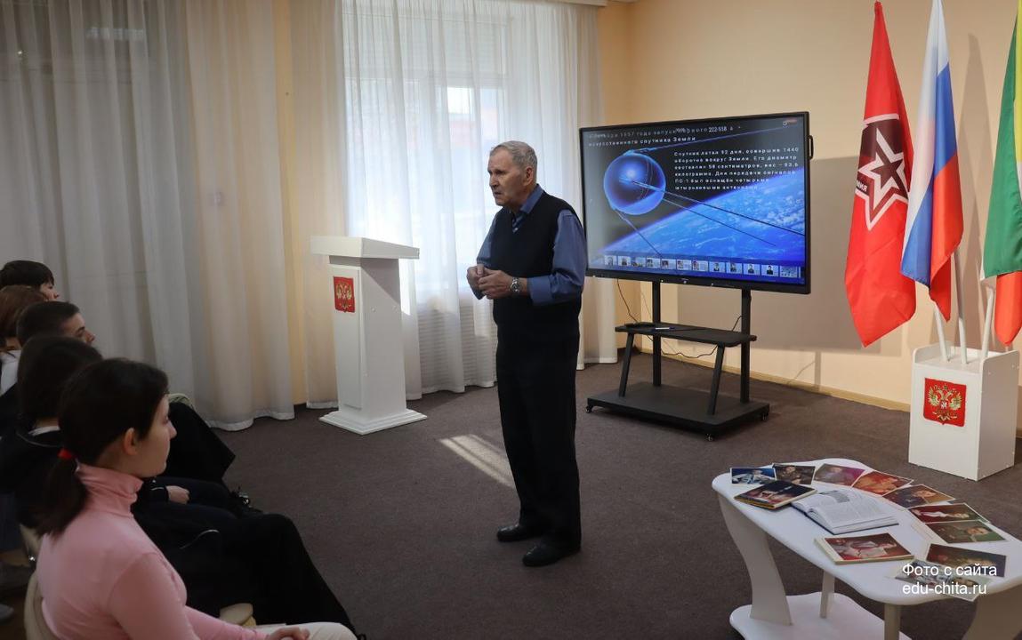 Борис Георгиевич поделился с ребятами историей своего профессионального пути. Выпускник школы посёлка Могочино Томской области, в 1963 году он поступил в Челябинское высшее военное авиационное училище штурманов. Его карьера включает службу штурманом на самолёте Ан-12 в 566-м военно-транспортном авиационном полку, обучение в Военно-воздушной академии имени Ю.А. Гагарина и руководящую работу в должности начальника штаба 21-го авиационного полка истребителей-бомбардировщиков в Бурятской АССР.