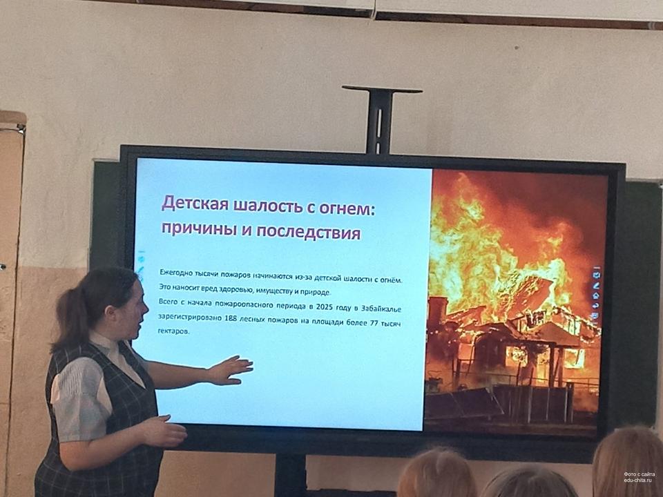 По статистике все больше выявленных случаев, где причиной лесного пожара становятся дети и неосторожное обращение с огнем. Об этом и о том, как избежать большой беды, классные руководители обсудили с учениками на разговорах о важном. На занятиях дети узнали о том, каковы опасности огня, как правильно себя вести в экстренной ситуации, посмотрели видеосюжеты, а также вспомнили, как использовать огнетушитель и звонить в службу спасения.