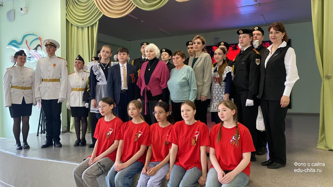В рамках визита состоялась торжественная линейка, на которой Галина Владимировна передала в дар школьному музею книгу, посвященную её отцу, пополнив таким образом музейную экспозицию, рассказывающую о подвиге героя.