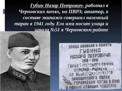 Жизнь забайкальца Назара Губина оборвалась в 23 года. Во время Великой Отечественной войны летчик вместе с двумя своими сослуживцами нанесли бомбовый удар по немецким войскам в районе города Чудово Новгородской области. Подвиг погибшего экипажа, летевшего в самолете, охваченным огнем, но выполняющего боевую задачу, помнят и чтят в нашей стране.
