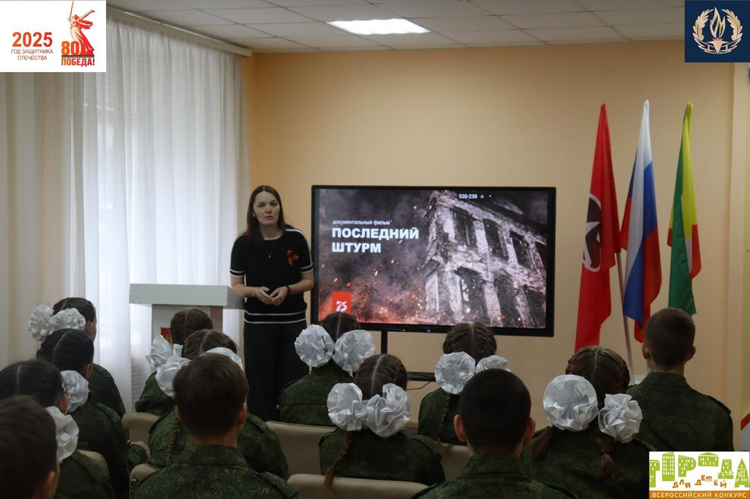 В Центре героико-патриотического воспитания «Доме юнармии» состоялся кинолекторий для Почетного караула школы №45, повествующий об этом знаменательном событии Великой Отечественной войны.
