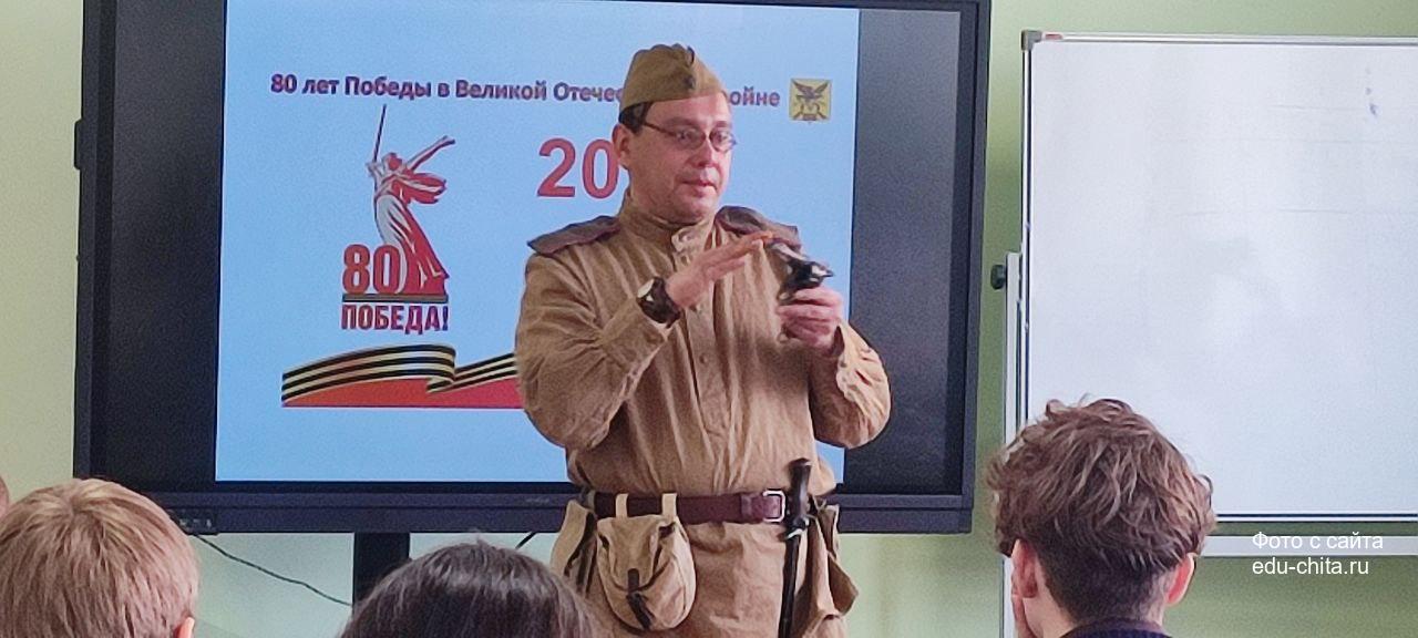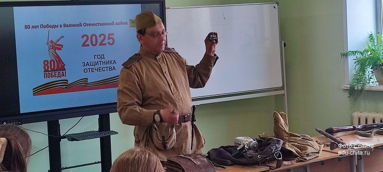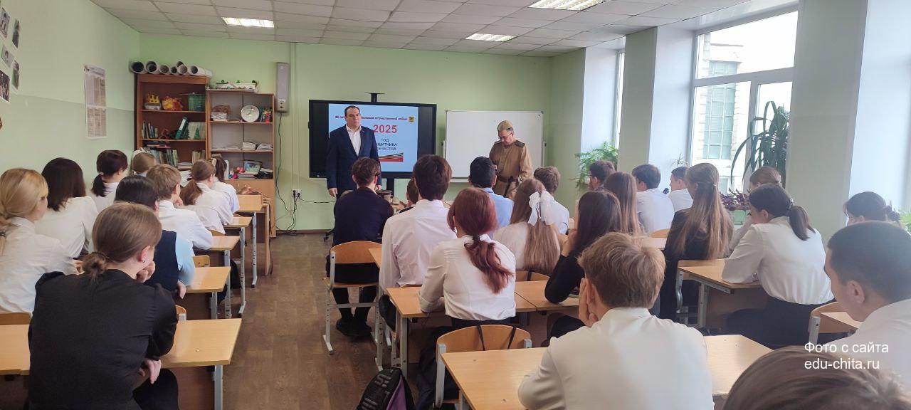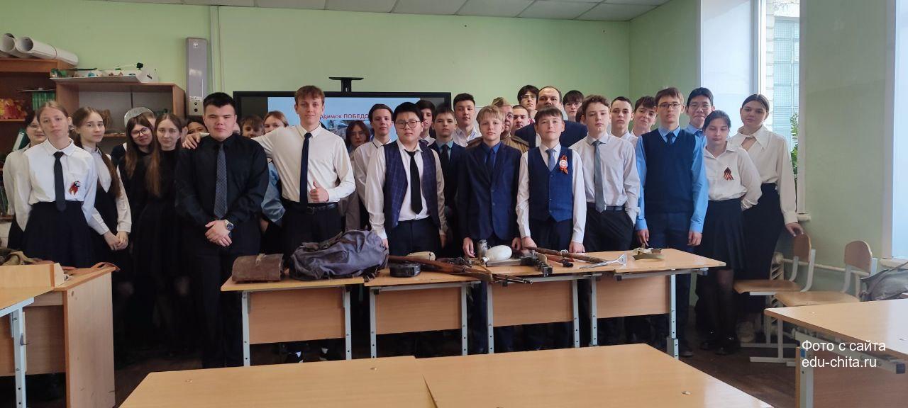 В школе №19 состоялась встреча старшеклассников с заместителем министра по социальному, экономическому, инфраструктурному, пространственному планированию и развитию Забайкальского края Иваном Шестаковым и участником клуба военно-исторической реконструкции «Забайкальский фронт» Антоном Владимировичем Сычевым.