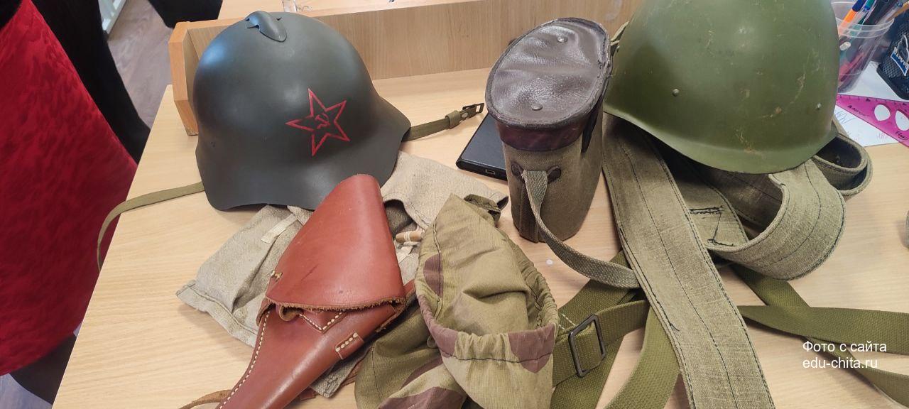 Школьники с интересом изучили аспекты разведывательной деятельности периода ВОВ, увидели боевые бинокли, защитные шлемы и специальные ремни для транспортировки раненых с поля боя.