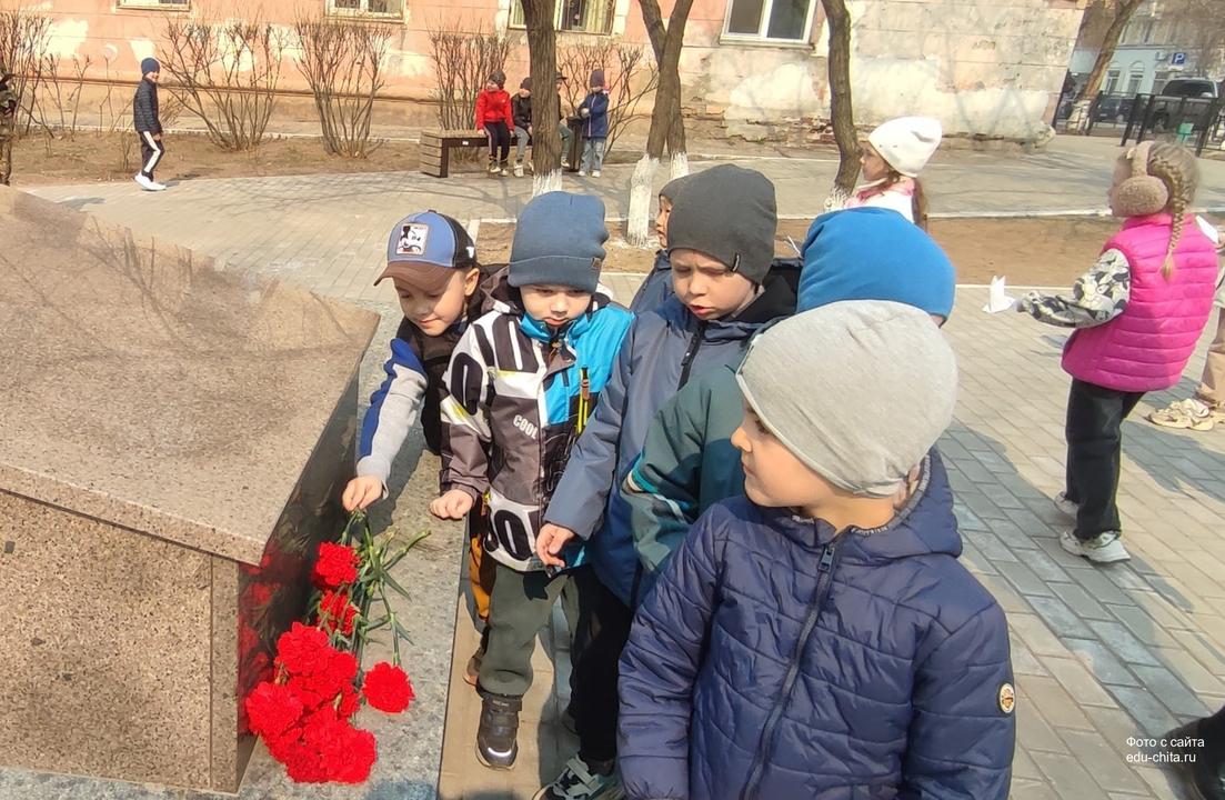 Дети дарили бумажных голубей прохожим, а также возложили цветы к памятнику солдатам специальной военной операции.