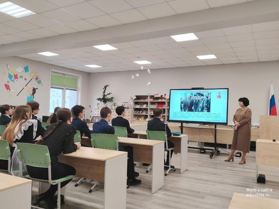 Министр здравоохранения Забайкальского края Оксана Немакина провела в школе №55 урок мужества, посвященный героизму советского народа в годы Великой Отечественной войны и подвигам современников.