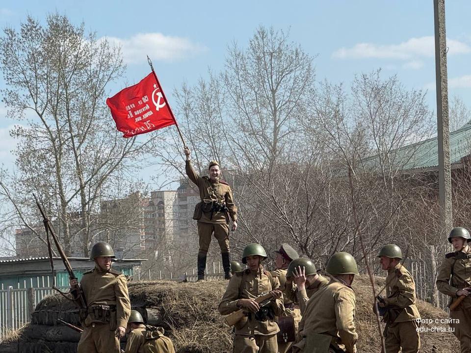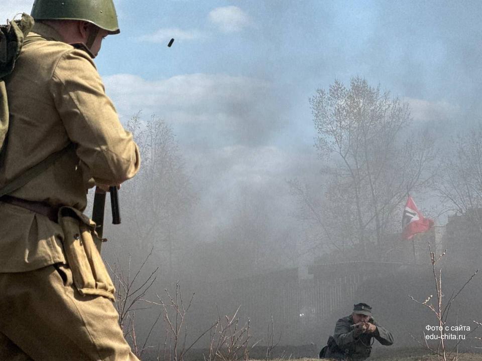 8 мая юнкоры городского медиацентра работали на реконструкции одного из боев Великой Отечественной войны, организованный клубом военно-исторической реконструкции "Забайкальский фронт".