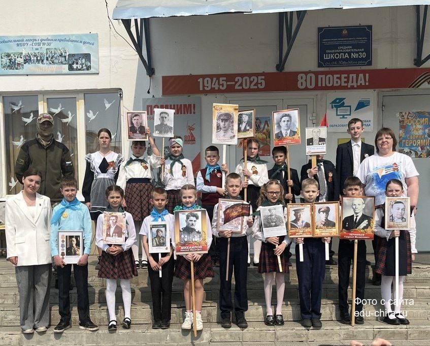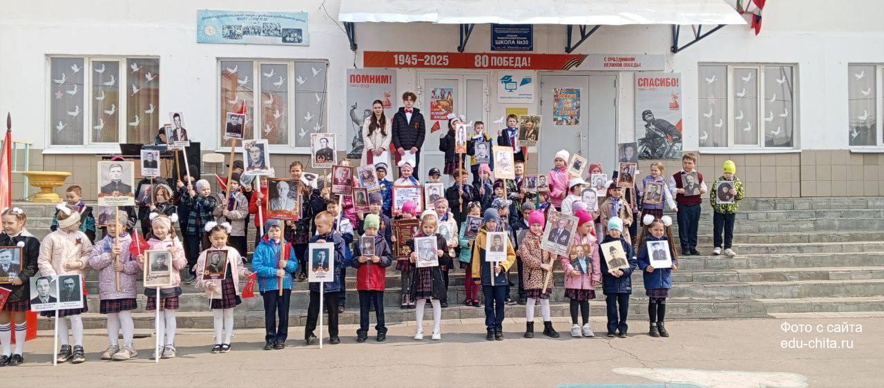 Акция «БЕССМЕРТНЫЙ ПОЛК: Герои среди нас» в школе №30 была организована советником директора по воспитанию Пентюхиной Татьяной Александровной, учителями начальных классов, родителями обучающихся, активистами ученического самоуправления и Движения Первых, школьным Почётным караулом и творческими школьными коллективами. Участниками Всероссийской Акции стали 735 учеников начальных классов.