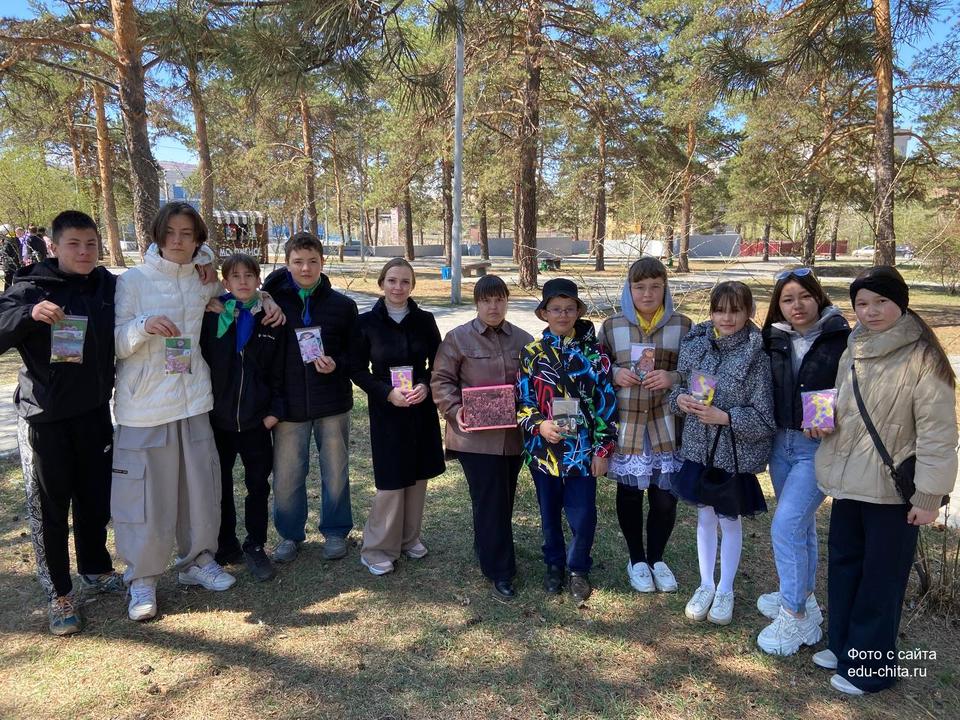 Вторая акция – «Русский сувенир» – была организована для детей 8-10 лет при поддержке студентов Читинского педагогического колледжа. Ребята приняли участие в викторине о России, народных играх и мастер-классах по изготовлению русских сувениров: матрёшек, петрушек, дымковских игрушек и Чебурашек. По окончании творческих занятий юные участники обменялись сувенирами на итоговой линейке.