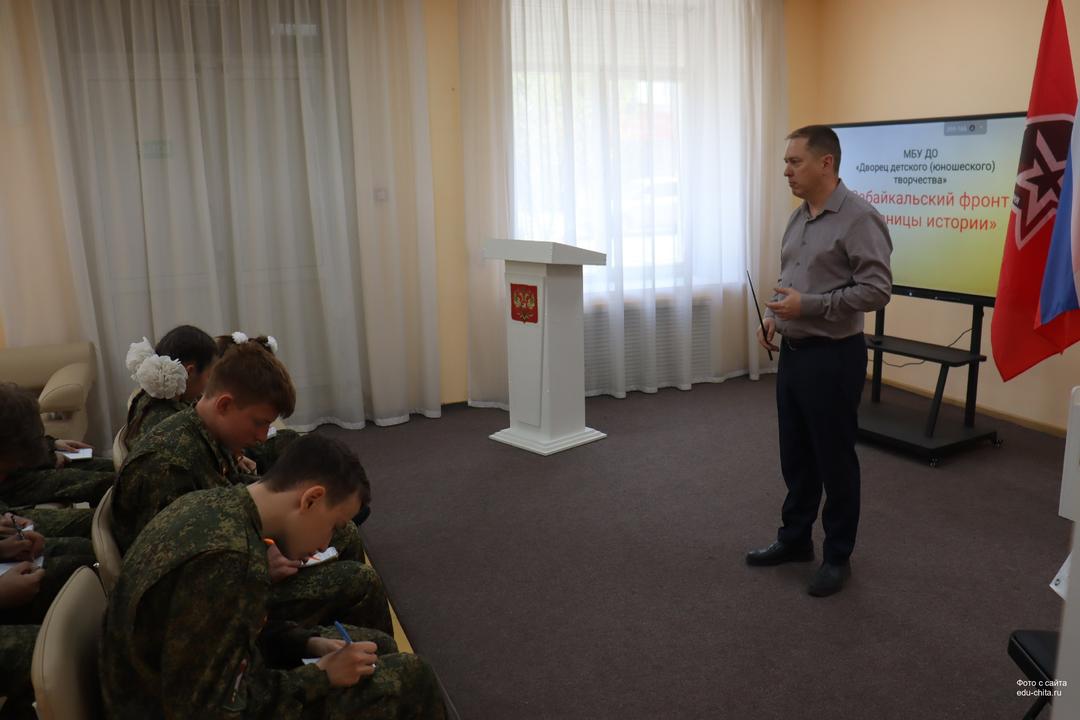 Денис Жеребцов, знакомя ребят с проектом «Забайкальский фронт. Страницы истории», рассказал о завершающем этапе Второй мировой войны. Присутствующие узнали о действиях Забайкальского фронта, об этапах Маньчжурской стратегическо-наступательной операции, боеспособности Квантунской армии Японии, которая считалась непобедимой.