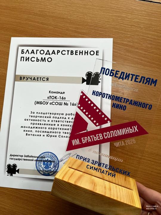 Медиацентр «ТОК 16» школы №16 стал обладателем приза зрительских симпатий в городском конкурсе короткометражных фильмов, организованном Молодёжным центром «Искра».