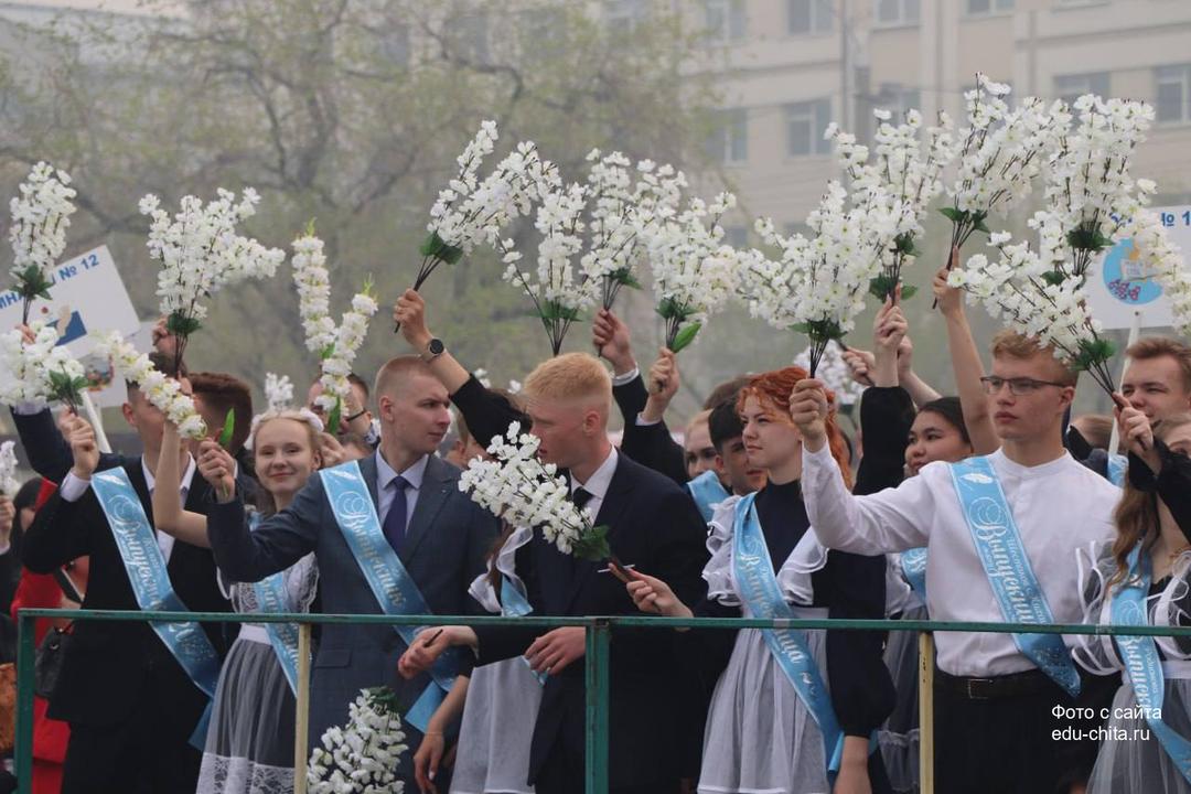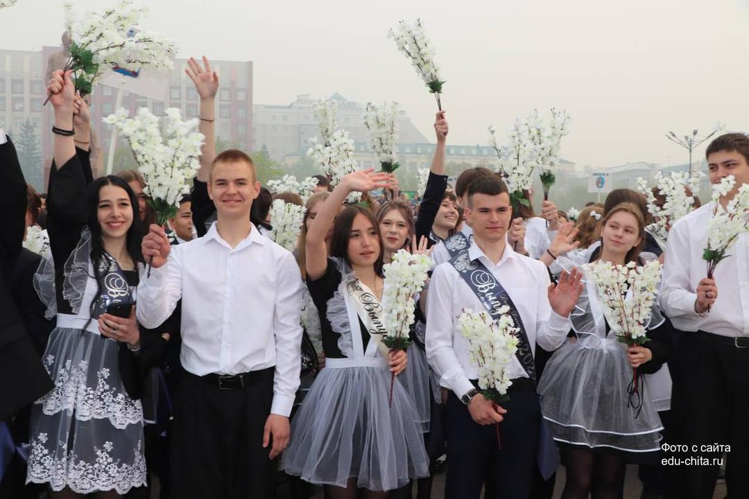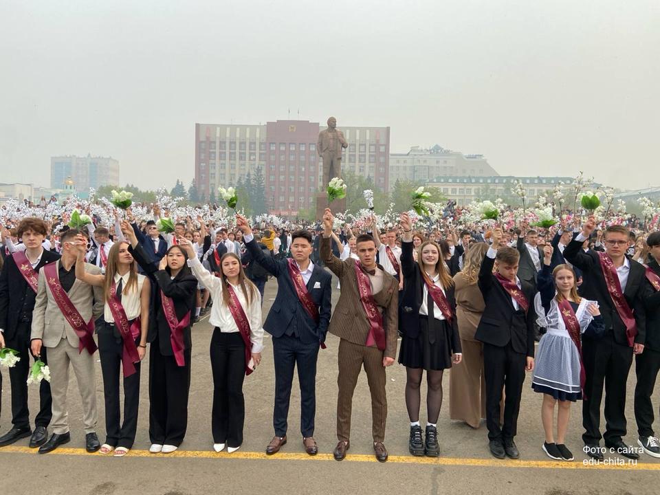 В торжественной церемонии приняли участие более 1500 выпускников 11-х классов из школ города Читы. Мероприятие было приурочено к 80-летию Победы в Великой Отечественной войне, что придало особую торжественность и символизм празднику.