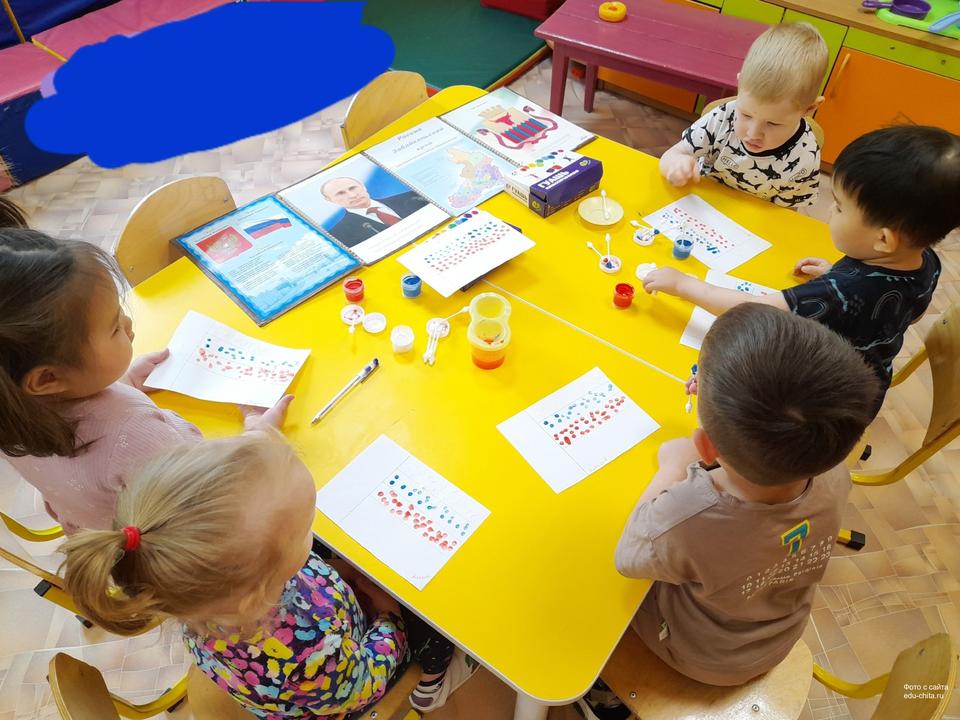 Особое внимание уделяется развитию творческих способностей малышей. Под руководством воспитателя Шаршиной Виктории Анатольевны ребята осваивают необычную технику рисования, создавая яркие и выразительные образы государственного символа.