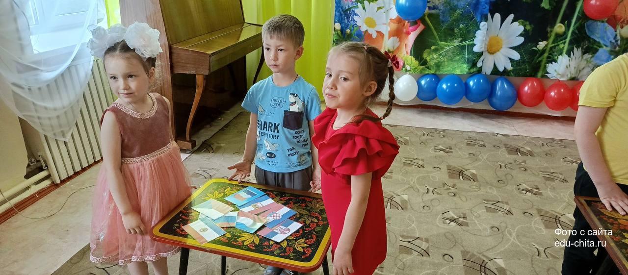 В рамках праздника дети познакомились с историей и значением государственных символов — флага, герба и гимна России. Ребята читали стихи о Родине, исполняли песни, танцевали, участвовали в весёлых играх и флешмобах с российскими флажками.