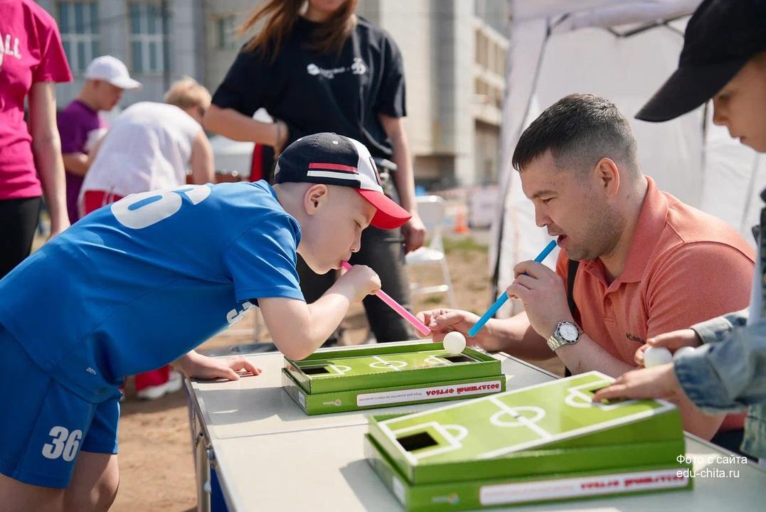 На фестивале работали более 15 тематических площадок для всей семьи: скейт-зона, адаптивные игры, современные вариации игр с мячом: текбол, доджбол, панна футбол, сабсоккер. Организаторы праздника предусмотрели и творческие мастер-классы — читинцы пекли блины,раскрашивали шопперы, создавали собственные стикерпаки и кеды-оригами.