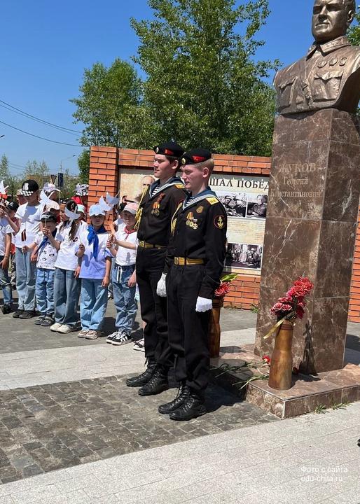 В День памяти и скорби в летнем лагере школы №30 состоялся митинг «Память сильнее времени». Дети собрались в сквере имени маршала Жукова. Организаторы рассказали ребятам о первых днях войны. Почетный караул внес копию Знамени Победы. Все участники почтили память погибших минутой молчания. Юнармейцы и участники «Движения Первых» возложили цветы к памятнику маршалу Жукову.