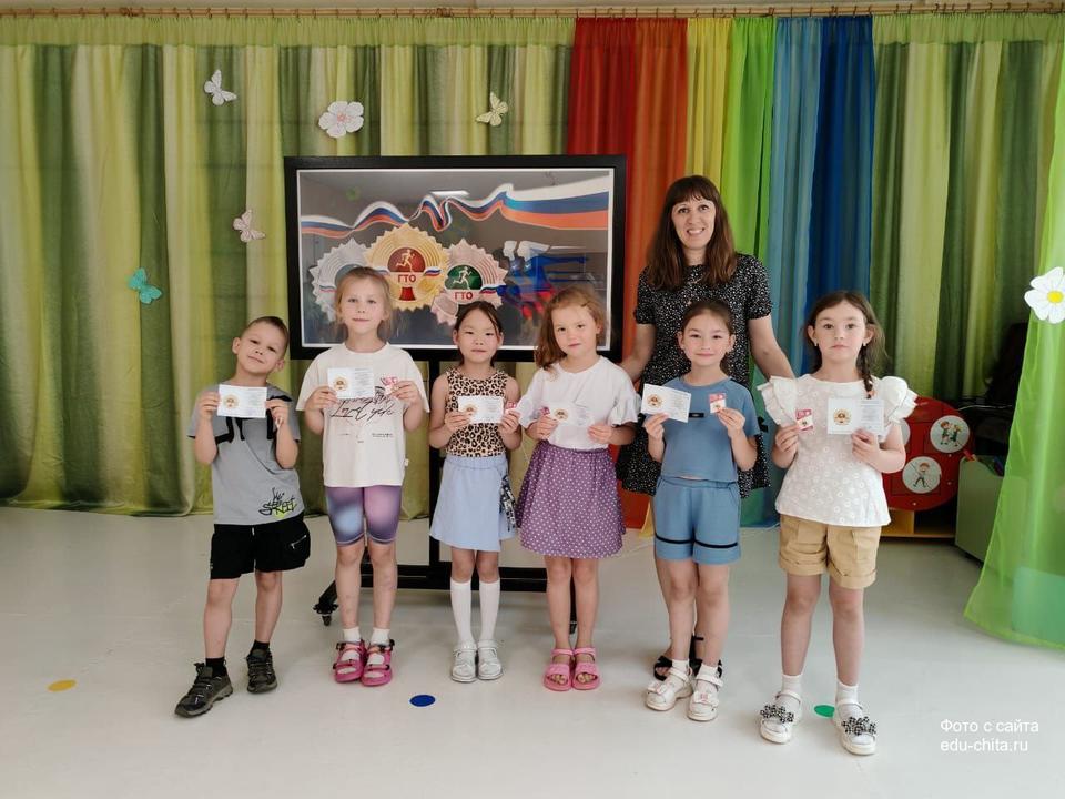 Воспитанники детского сада № 35 получили золотые значки ГТО. Ребята долго готовились и сдали все нормативы на отличные оценки.