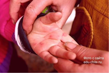 - Кожная сыпь: чаще всего сыпь появляется во рту, на руках и ногах (синдром «рука-нога-рот»).