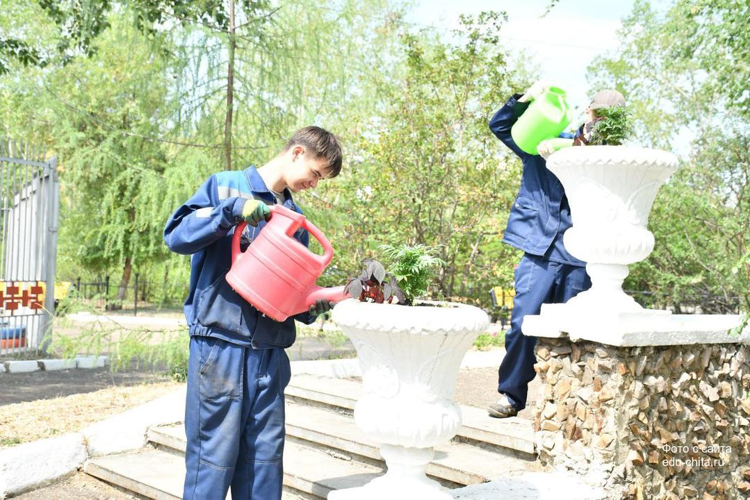 Пятеро юношей этим летом трудоустроены в Дом офицеров Забайкальского края на должности разнорабочих. Их трудовой день начинается в 8 часов и заканчивается в 11.30. Предусмотрена сокращённая рабочая неделя. Все обеспечены специальной одеждой, инвентарем.