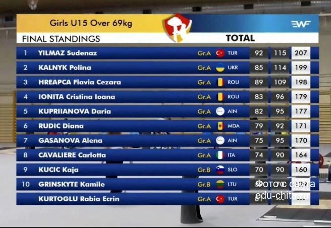 15-летняя Дарья Куприянова из спортшколы № 6 Читы на юниорском первенстве в Мадриде по тяжёлой атлетике выступала в категории свыше 69 кг — под нейтральным флагом.