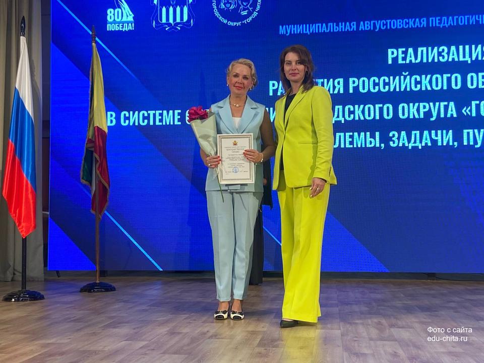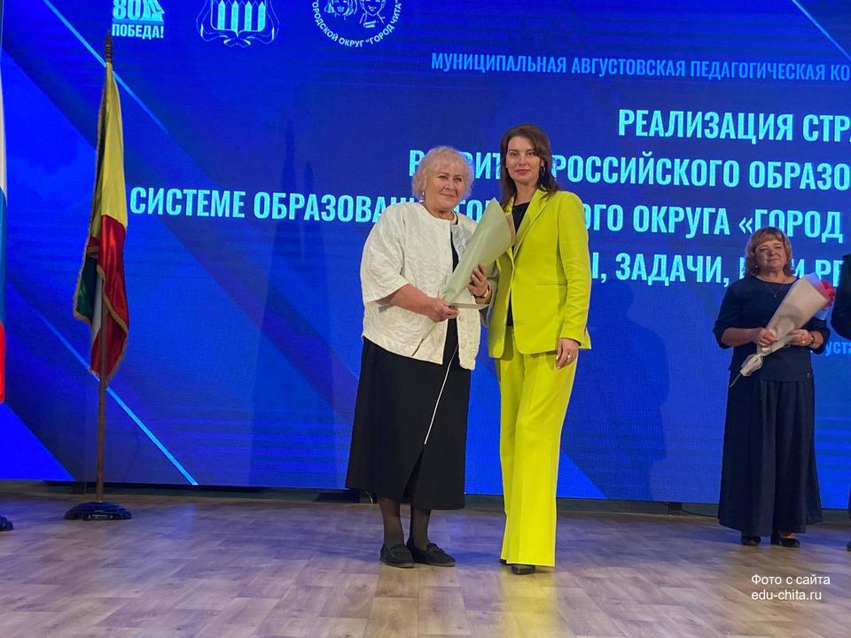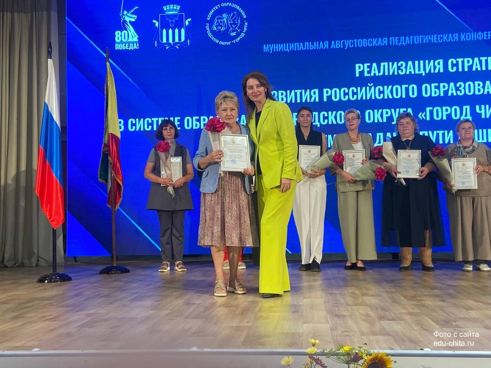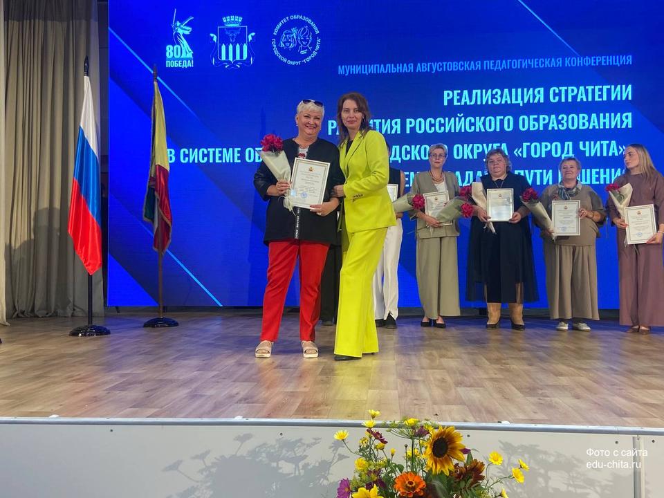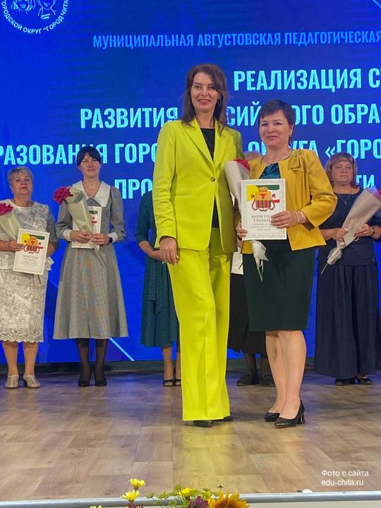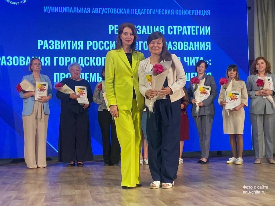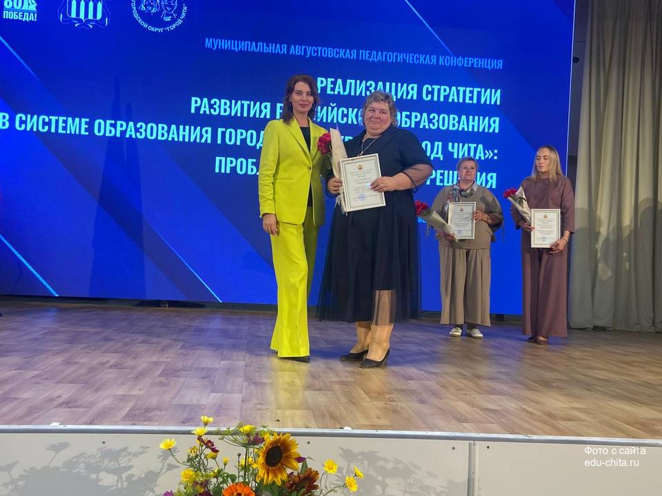 Благодарственным письмом администрации Читы за высокий профессионализм, преданность своему делу и успешную работу в сфере образования награждены: