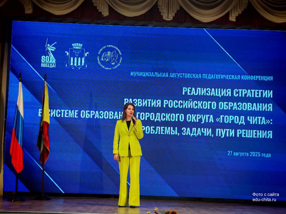 «Уважаемые коллеги! Сегодня мы не просто подводим итоги проделанной работы и ставим задачи на новый учебный год. Это гораздо больше, чем просто совещание. Это возможность объединиться, найти общее видение,поставить перед собой важнейшую цель на ближайшее десятилетие. Дорогие коллеги, перед нами стоит важнейшая задача - воспитать новое поколение патриотов нашего любимого города Читы! Давайте вложим в это свои сердца, знания и умения. Вместе мы сможем сделать Читу еще более процветающей и привлекательной для молодежи!»,- подчеркнула Мэр краевой столицы.
